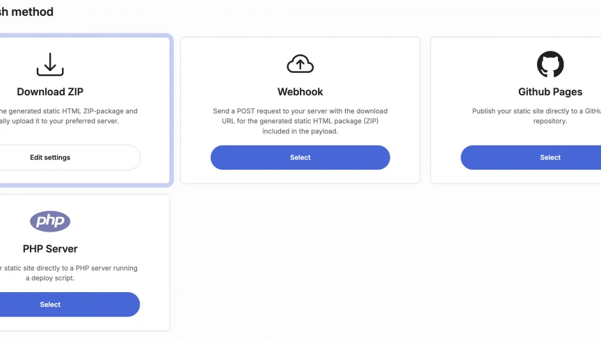 New Publish to "Github Pages, Netlify, PHP, Webhook, anywhere..."